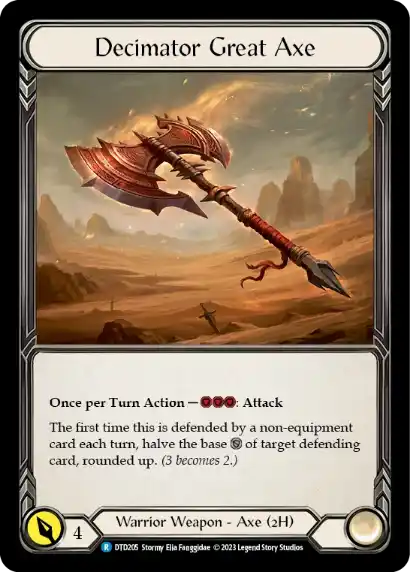• Pokud dostane na zbraň Go Again, ale soupeř ji úspěšně blokne, může akční bod využít i na jiné karty, jako Energy Potion či Command and Conquer