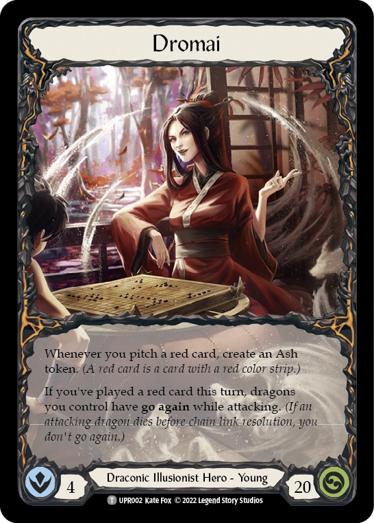 Dromai je hrdina, který dokáže díky kombinaci obranných reakcí, agresivních útoků a otravných draků získat dodatečnou hodnotu téměř z každé ruky. Na začátku hry většinu času přijímá poškození od soupeře, aby si mohla vybudovat popel a draky. Ve chvíli, kdy má v aréně 3+ draků, může klidně jen blokovat třemi kartami, zahrát červenou kartu jako Sigil of Solace