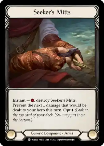 je jí jedno, jestli začíná hru první nebo jde druhá. Pokud začíná, odhodí 2 červené do Goldu – dobere si kartu a vytvoří 2 popely. Takto může zahrát draka a ukončit kolo s kartou do arzenálu. Docela dobré na první kolo, navíc nedá soupeři šanci profiltrovat si karty. Pokud jde do druhého kola, rozbije si vybavení (Seeker’s Mitts