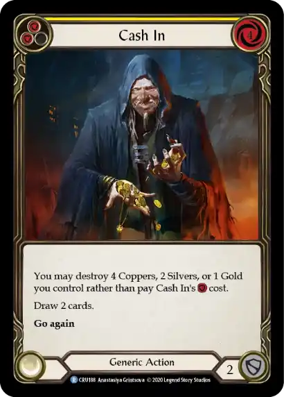 reprezentuje 10 zranění, konkrétně buff, buff, Go Again a možnost zaútočit dvakrát stejnou zbraní. Za 6x Copper