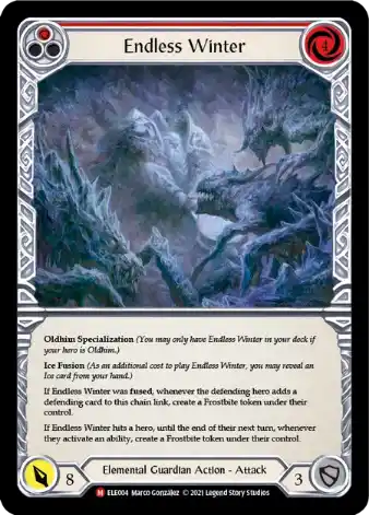 Hrdinská schopnost Oldhima tomuto vysoce efektivního a flexibilnímu stylu hraní jedině přispívala. Mohl ji totiž využít rovnou dvěma způsoby, čistě defenzivním a defenzivně disruptivním. Zaplacením Earth karty jste mohli preventovat až 2 příchozí zranění, a to klidně napříč vícero zdroji. Zaplacením Ice karty jste nepřítele donutili strčit jednu kartu na vršek balíčku, čímž jste mu mnohdy ukončili efektivní kolo a zničili stěžejní kus jeho komba.